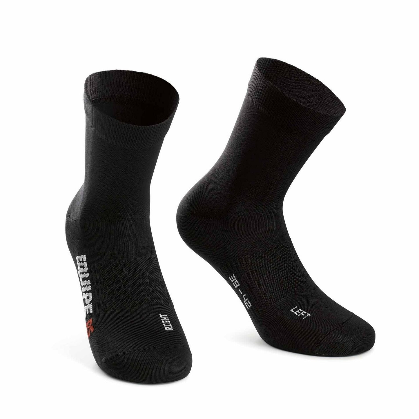 The EQUIPE RSR Socks have been specifically designed for high-output racing conditions, ensuring your feet stay cool, supported, and fresh for the duration of your longest, hardest efforts. To accomplish this, Assos leaned on InfraRed yarns that have a high percentage of elastomer for compressive support throughout, blended with Lycra to deliver a firm, supportive hold along the foot, ankle, and lower leg. From there they targeted the arch, wrapping it with a ribbed band for further support and boosted breathability, along with a contrasting band along the top for a clean finish.