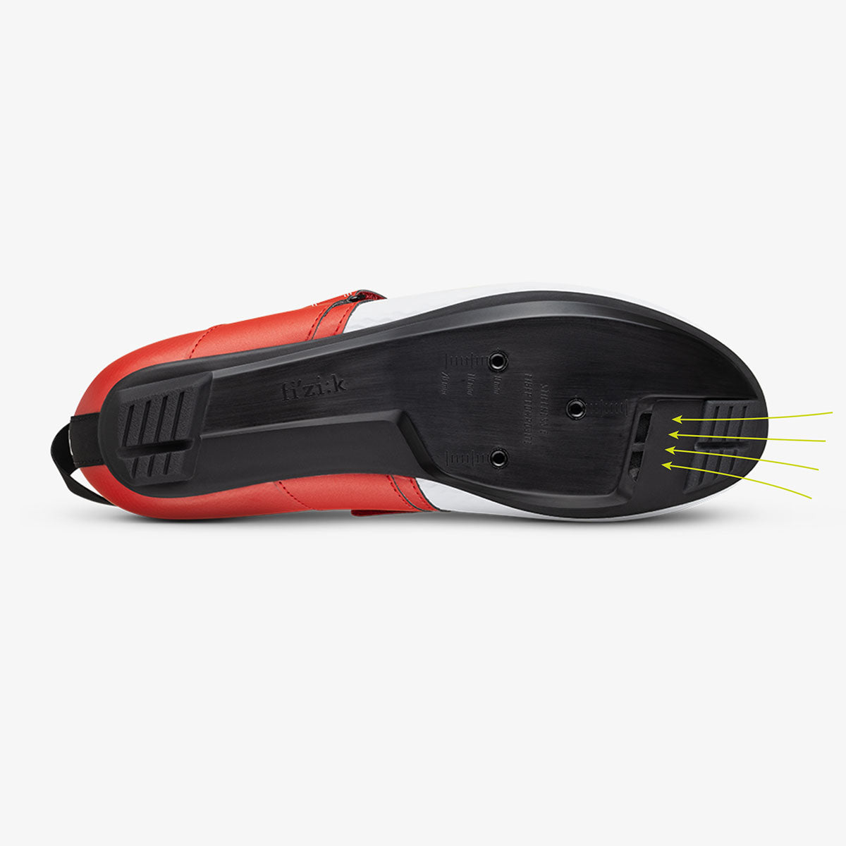 CONTROL, COMFORT AND EFFICIENCY: The newly redesigned R5 nylon outsole offers comfort and a moderate level of stiffness for efficient pedaling. Additionally, cleat positioning is set slightly further back compared to traditional settings to better optimize pedaling efficiency and reduce knee compression. A wide vent inlet provides cooling airflow, aiding in temperature regulation.