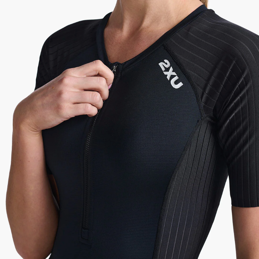 With advanced muscle support to minimise fatigue and industry-leading aerodynamics and ventilation technologies, the Aero Sleeved Trisuit is your go-to trisuit for your next competition.
