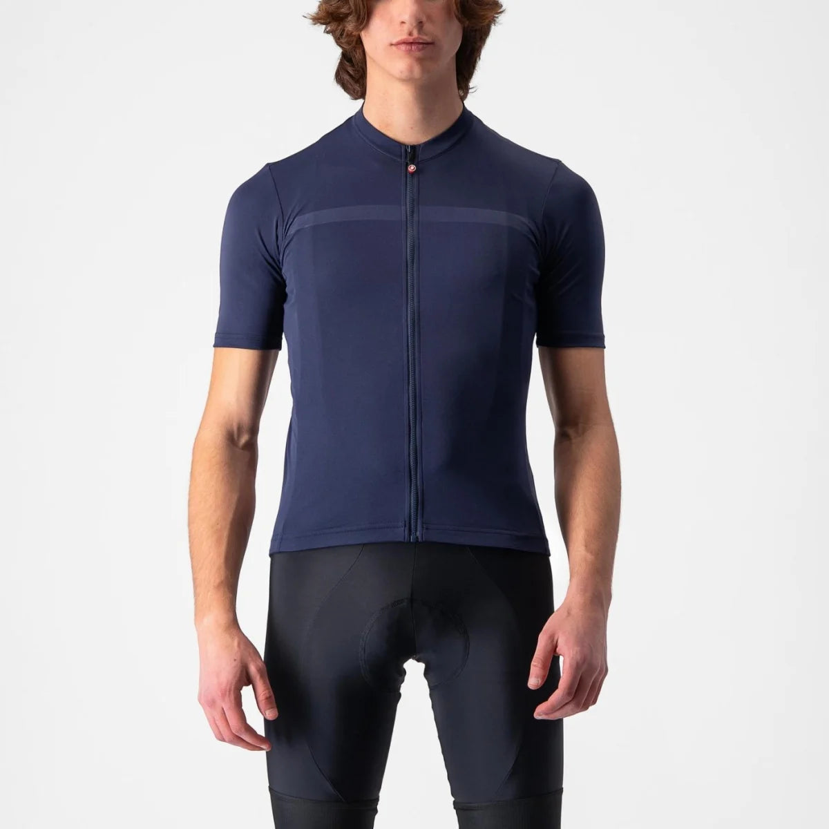 For those days when you're not racing the clock but simply clocking the hours in the saddle. You want to be comfortable and look good. Castelli engineered everything but speed into this jersey. It uses a brand-new fabric that lets them cross-dye it to give a richer depth of color to the shoulders and sides on an otherwise solid-colored jersey. Since it's made for long rides, Castelli added a zippered pocket to keep your valuables safe. The fit is close to the body for comfort but not as revealing as that of their race pieces.