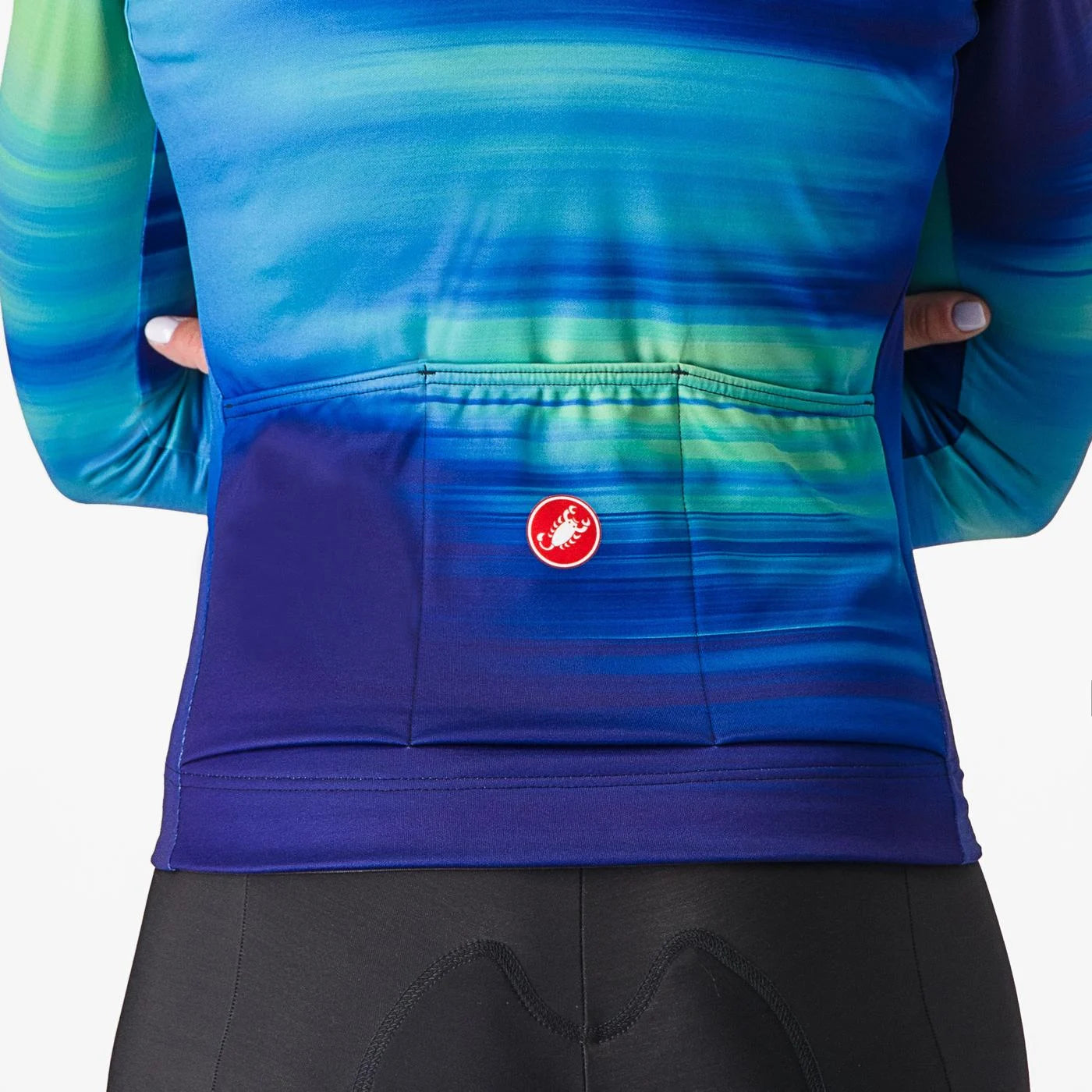 The thermal jersey is the first step into cool-weather clothing, where Castelli has set the standard for what clothing can do. We've carried on that tradition here. You'll wear this jersey on cool days, so we've given it a brushed fleece backing but kept the fabric stretchy for a great fit. Since you're using it in conditions that aren't cold enough for a jacket, we've engineered the fabric to let some air in so you don't overheat. We think a jersey like this should be pure function, so you've got three spacious rear pockets, silicone gripper elastic, and an easy-sliding YKK® Vislon® zipper.'
