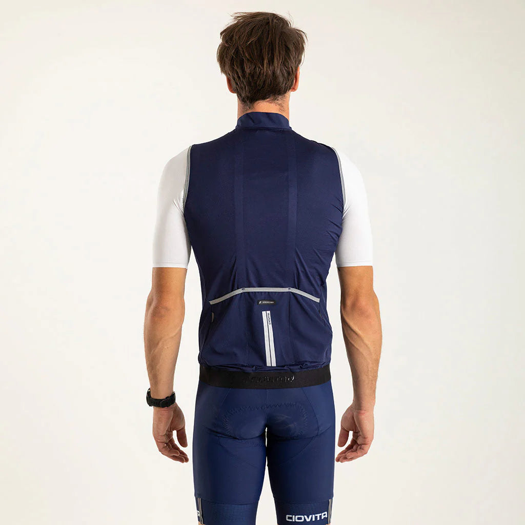 The Faro Gilet is designed to fit perfectly over our performance jerseys giving you complete control when it comes to regulating your core temperature. The gilet works by providing a protective windproof shell over your jersey keeping cold air and biting wind away from your core. This can be paired with a long sleeve jersey or thermal arm warmers to give you even more control on your ride.