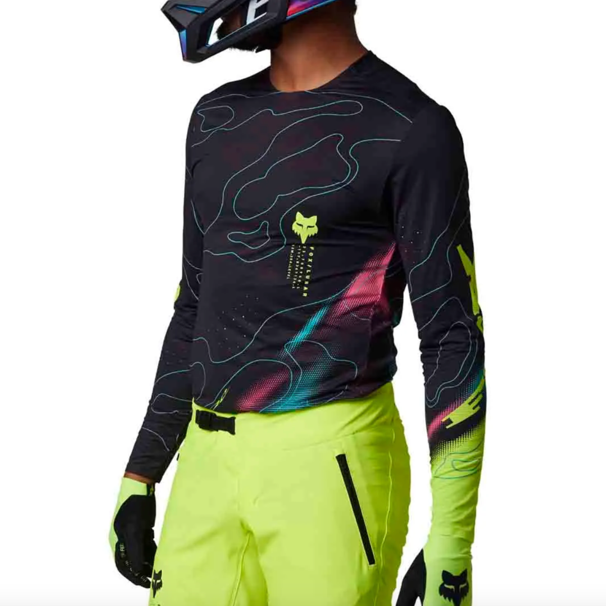 The ultimate mountain bike jersey for speed and performance. The Flexair Lunar Jersey is worn by our top athletes in the UCI World Cup Downhill circuit. With its technical features and next-level materials, it will keep you far out in front of the pack. The Lunar edition of this much-loved jersey features an eye-catching graphic that'll turn heads as you drop out of orbit.