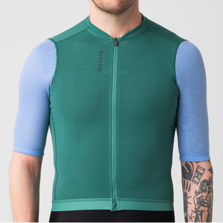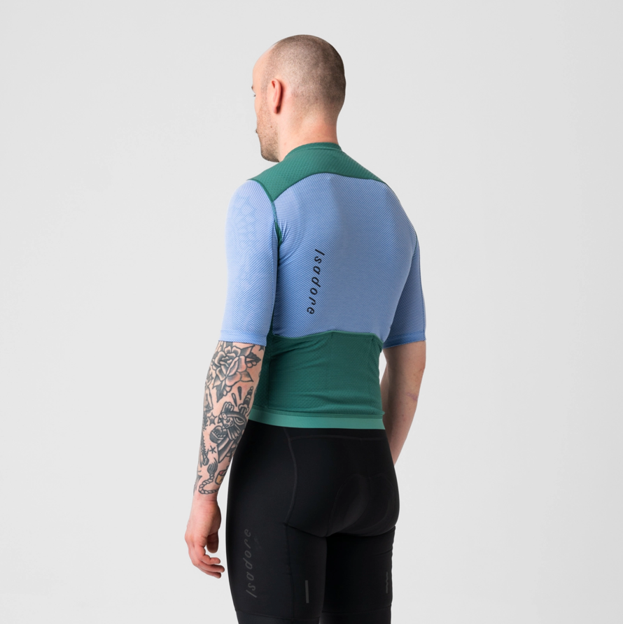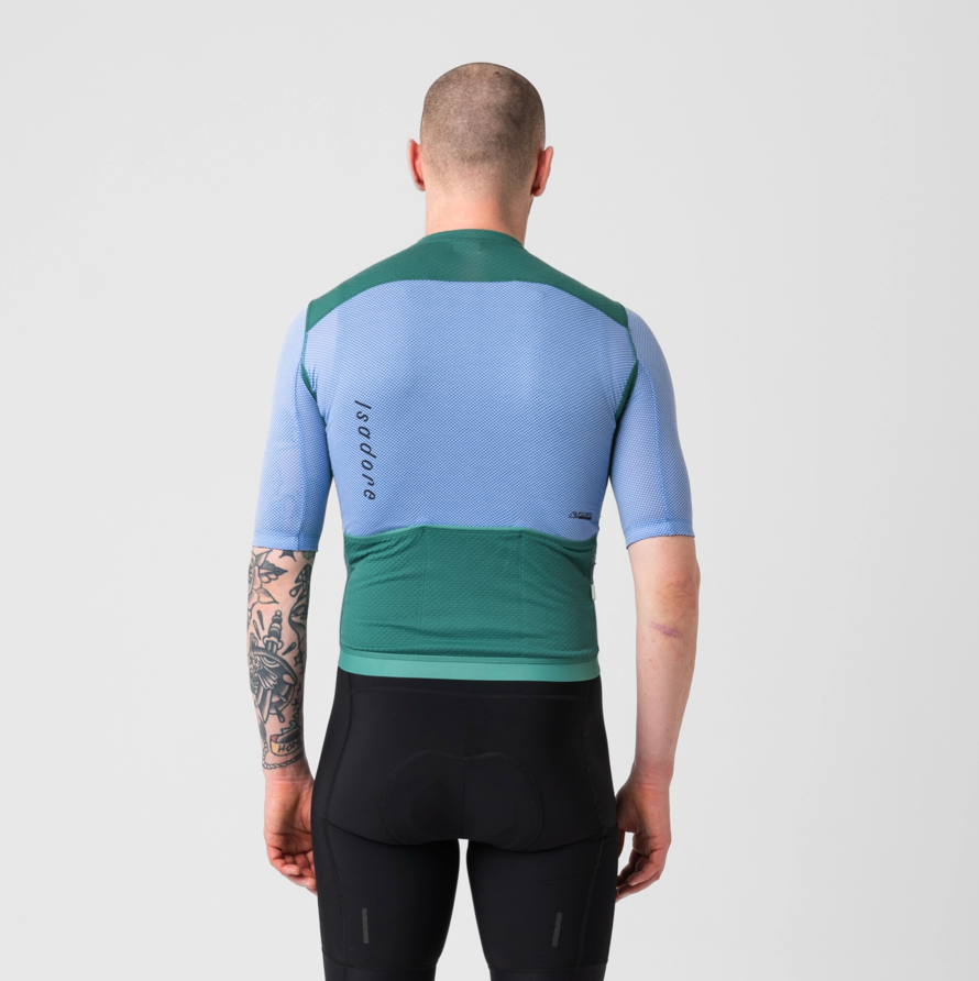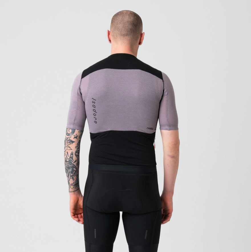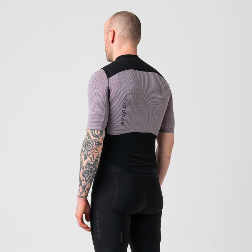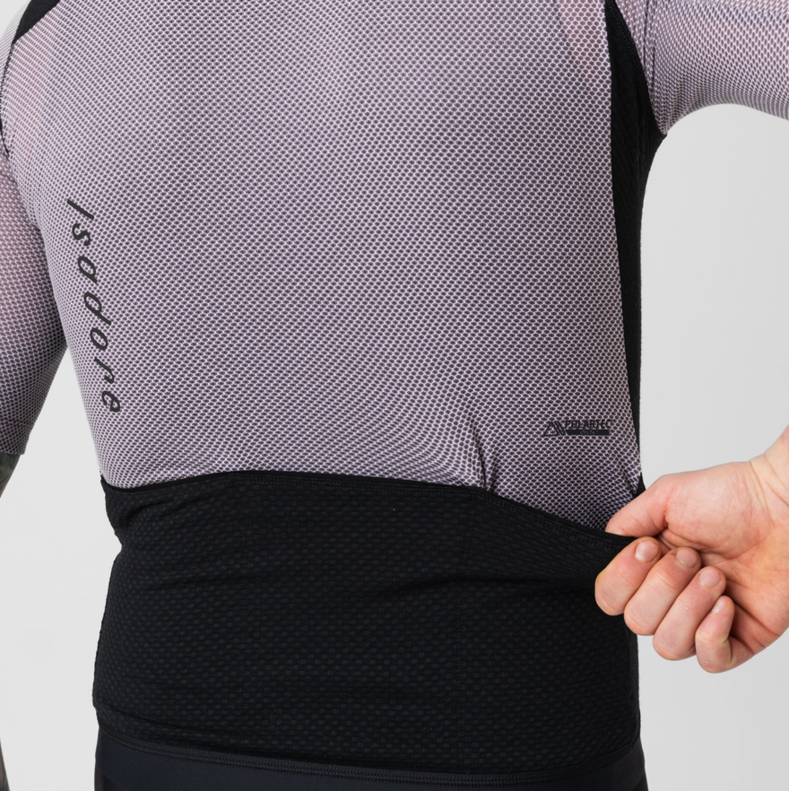 Breathable merino jersey made for intense training on really hot days for the natural feel of natural materials. The main material is a blend of synthetics and with a high merino content. It is perforated, breathable and quick-drying. The back panels, sleeves and pocket area are made of Polartec® Delta™ material with 3D structure and lyocell content. It is very light, elastic, characterized by quick-drying properties and cooling effect. Smooth feeling of natural materials in contact with the body is enhanced by the increased merino wool content, 3D fabric structure and flat seams. The jersey features 3 spacious back pockets, one zippered pocket and reflective logos on the front and back. One-way recycled zipper is covered with a flap and zipper garage that protects the bibs and leather from abrasion.