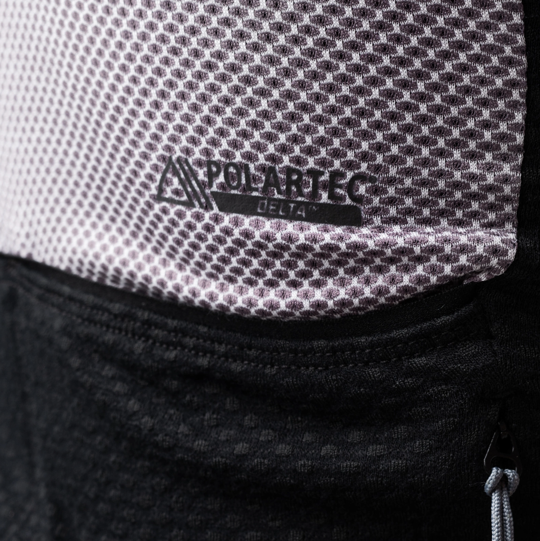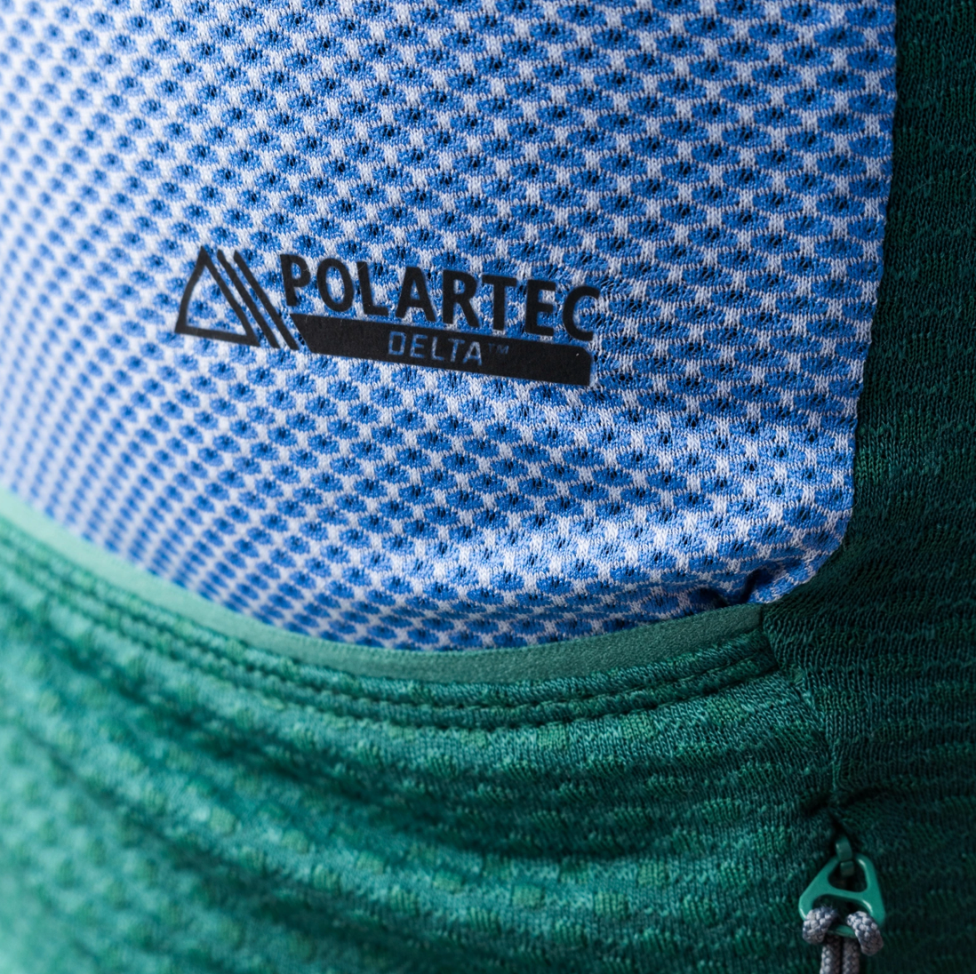 - Polartec® Delta™ with lyocell on back panel, sleeves and under back pockets with 3D structure for efficient moisture wicking and cooling effect