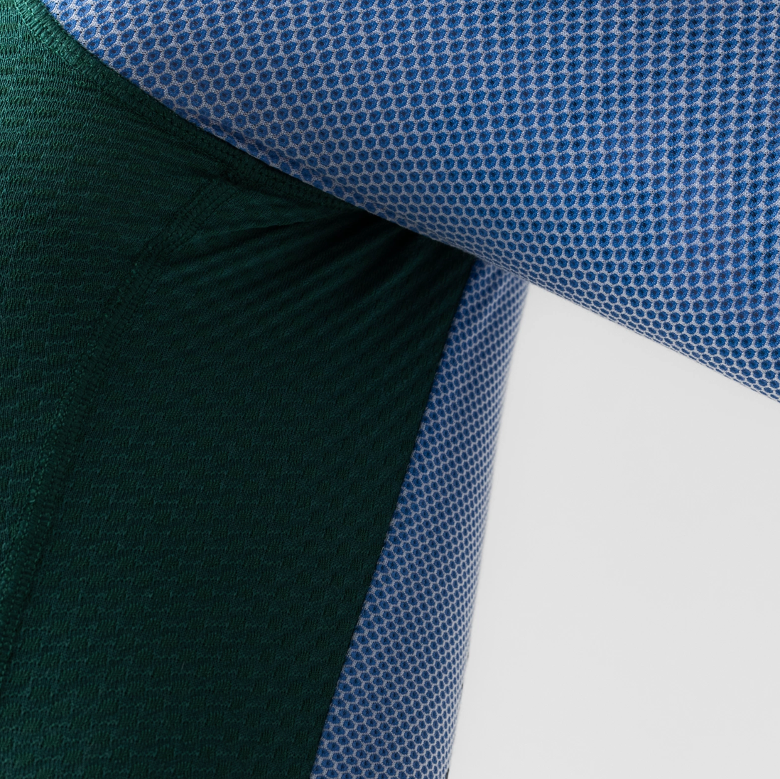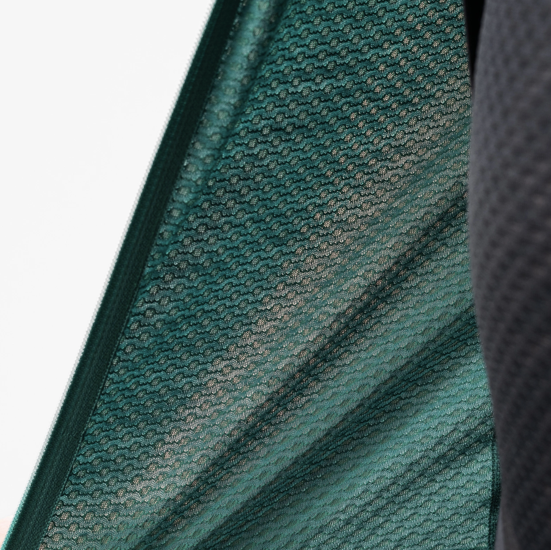 - Perforated two-component main material with a blend of recycled polyester and Lycra