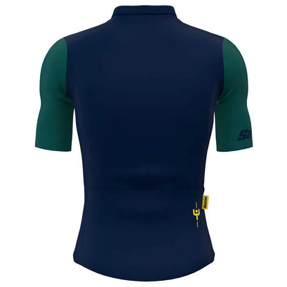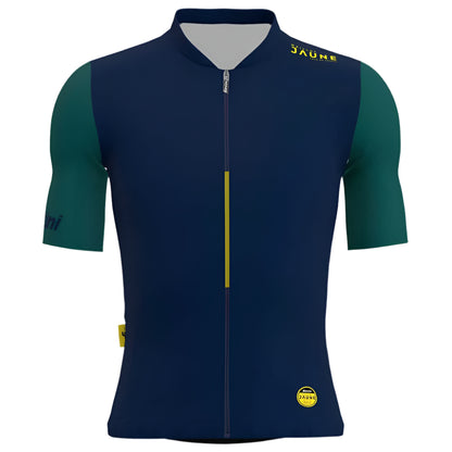 Allez short-sleeve jersey 100% made with recycled fabrics from PET and waste yarns. Breathable and lightweight fabrics with a sleek aero fit. Allez jersey is designed for performance and built for comfort during long summer rides. The design of the product is created to express the history and grandeur of the Tour’s enigmatic past in a range of modern, technical cycling apparel. Patch Maillot Jaune on the front and logo Maillot Jaune on the back pocket. Internal elastic with yellow silicon gripper at the bottom. Internal grip with Arc de Triomphe shape on the short sleeves.