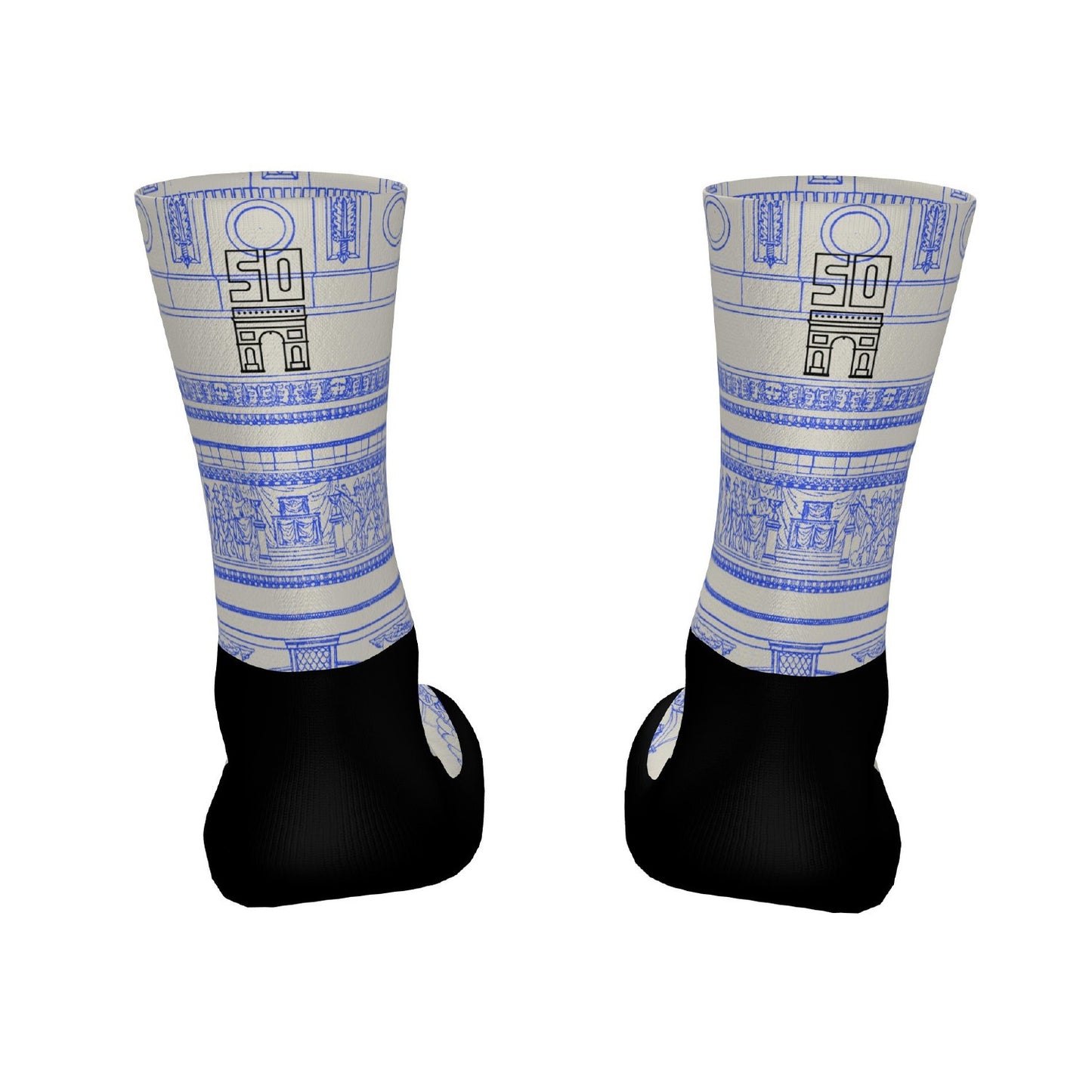 The Arc de Triomphe high-profile cycling socks are designed to ensure maximum comfort and superior performance during your rides. Part of the collection dedicated to the 2025 Tour de France Arrivée, these socks combine advanced functionality with an elegant, iconic design, perfect for celebrating the most prestigious finish in the world of cycling.